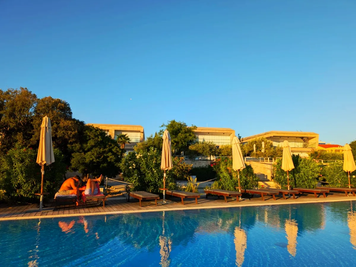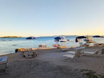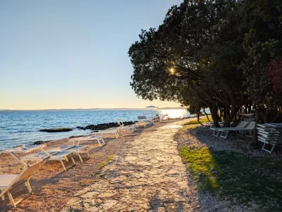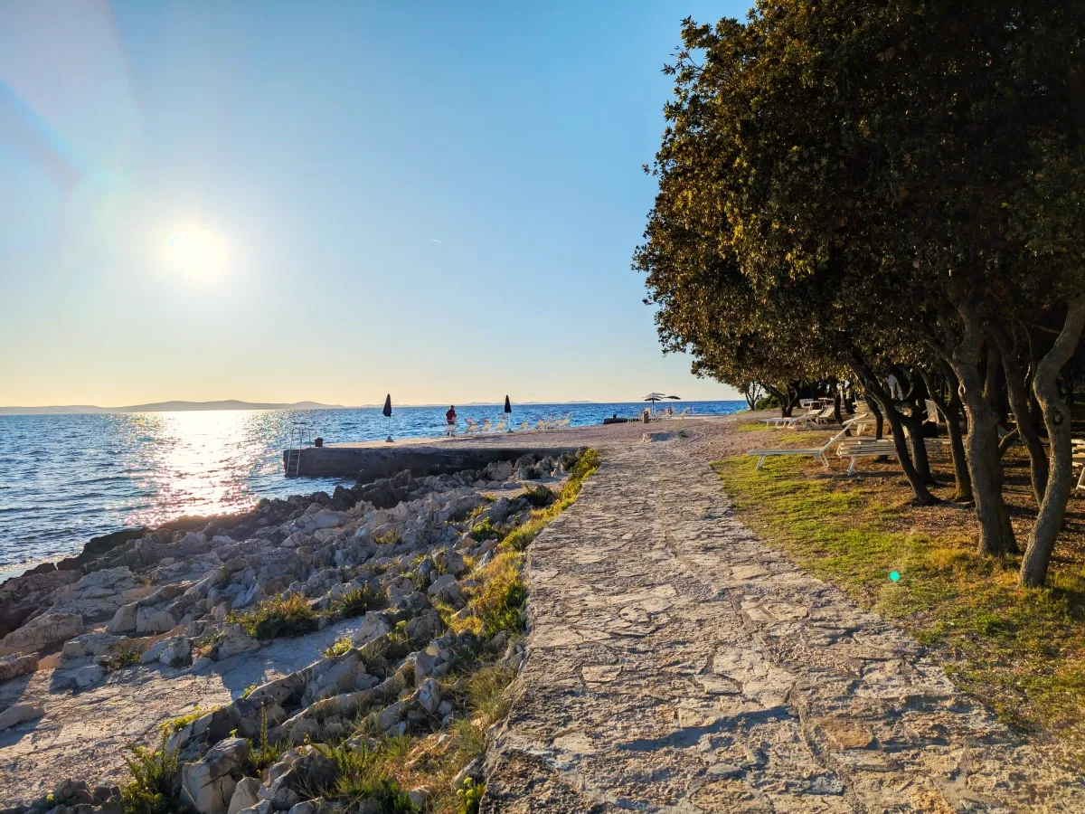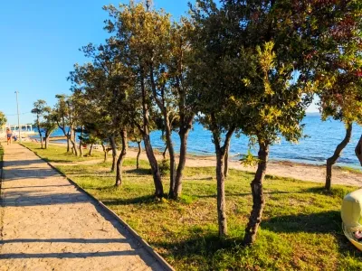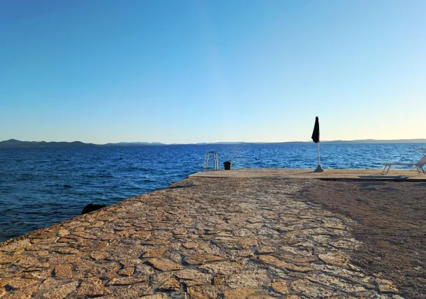 Along Punta Skala stretches a mile long beach with a beautiful landscape that shows the diversity and beauty of the coast. The beach is pebbly in places, sometimes paved with stone slabs, which dive into the crystal clear sea and there are also sandy areas for children.The long seafront promenade which is lit at night provides a nice atmosphere in the fresh air, peace and quiet.