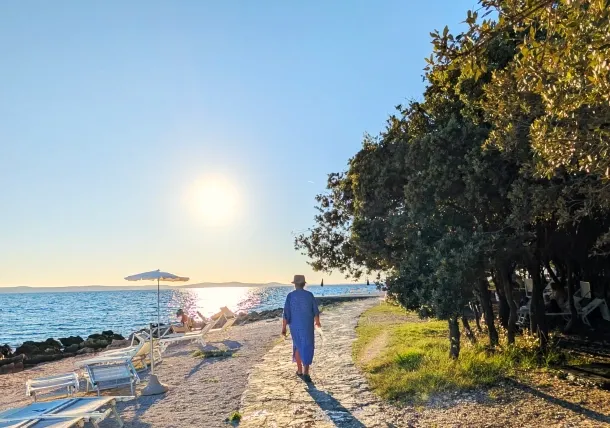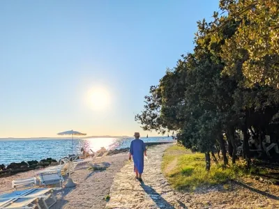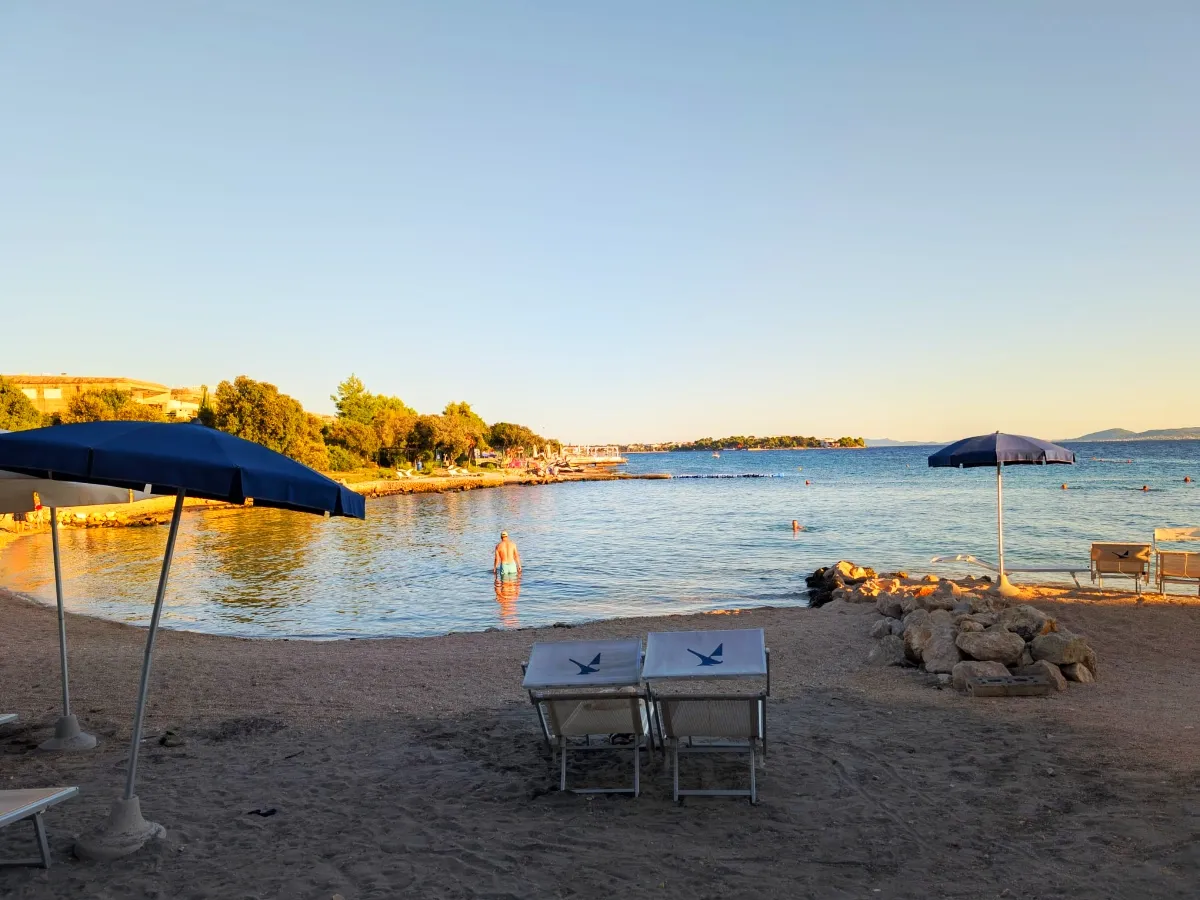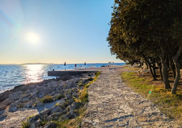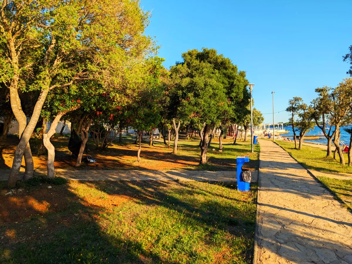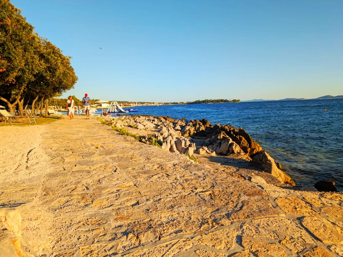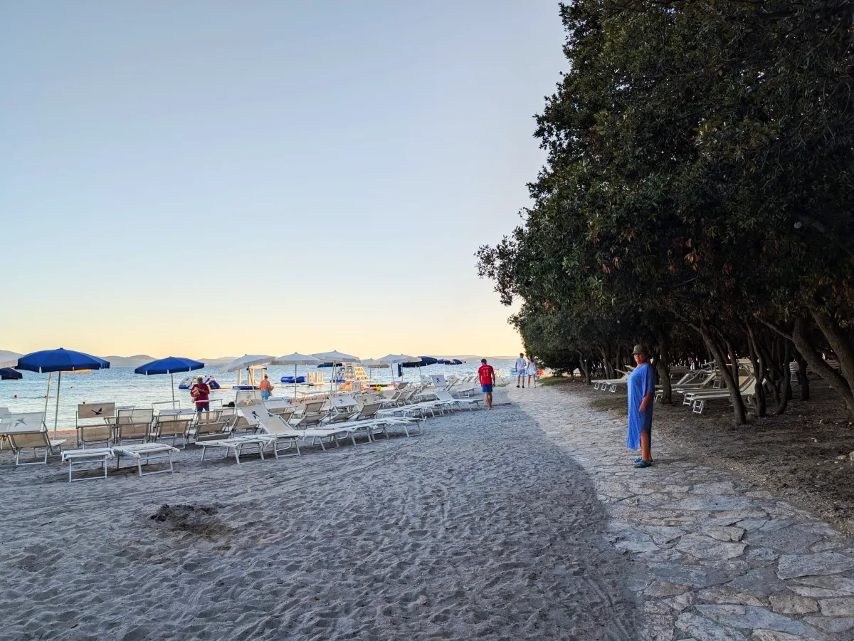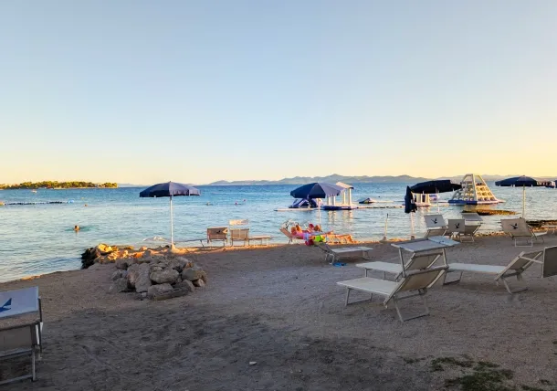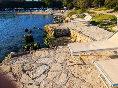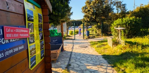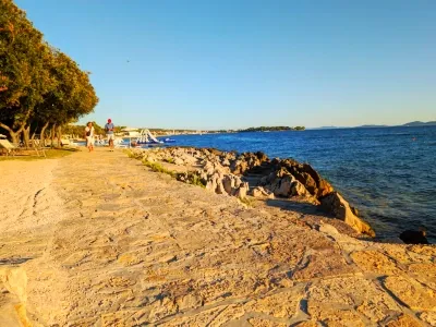Uz Punta Skalu proteže se dva kilometra duga uređena plaža uz predivan krajolik koji vam otkriva raznovrsnost i ljepotu obale. Plaža je ponegdje šljunčana, ponegdje popločena kamenim pločama koje uranjaju u čisto i bistro more te pješčanim dijelovima namijenjenim djeci.Duga i noću osvijetljena šetnica uz more pruža posebno lijep ugođaj na čistom zraku, miru i tišini.